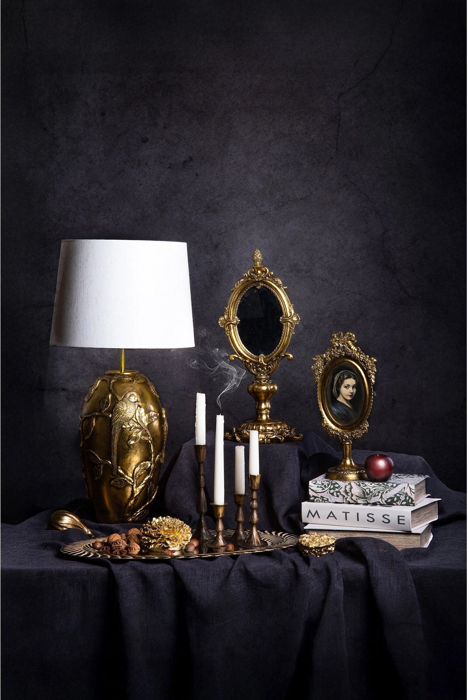 Spegeln blir en fin inredningsdetalj på ett sidobord, en byrå eller i ett stilleben tillsammans med andra dekorationer. Den stående modellen gör den enkel att placera och låter spegeln bli ett stilfullt blickfång i rummet.