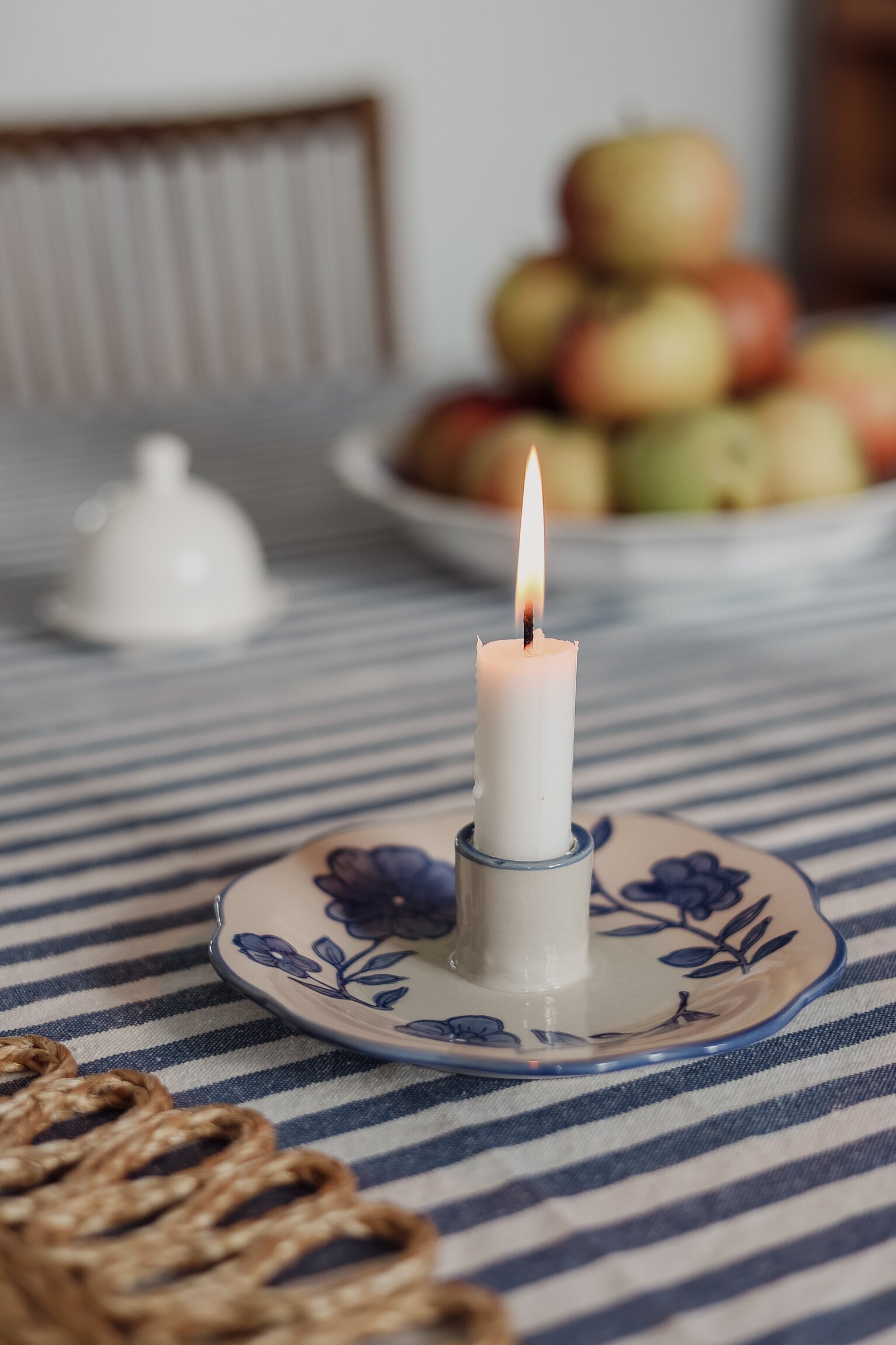 Ljuvlig ljusstake med ett handmålat mönster som sprider en varm och inbjudande känsla i hemmet. Läs mer