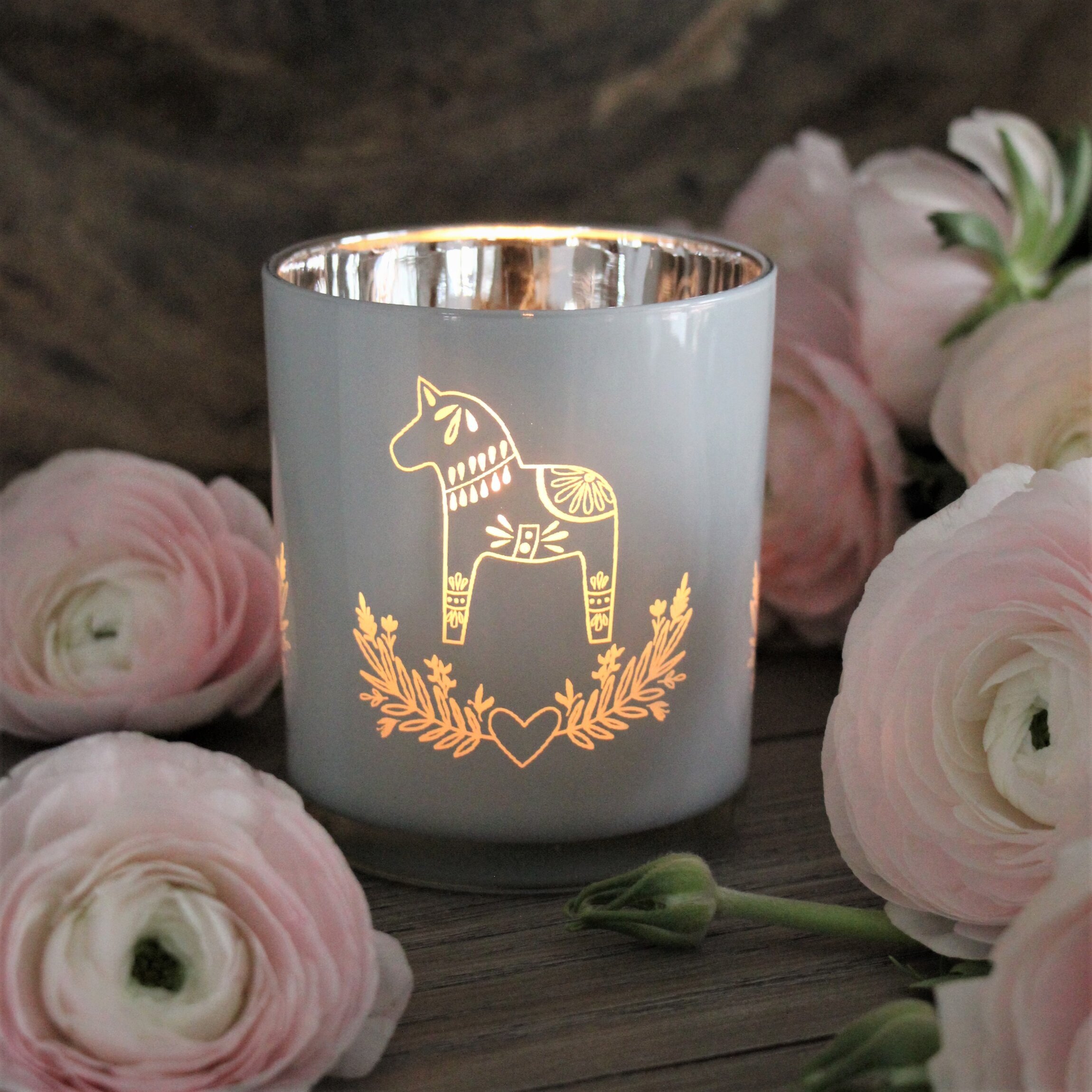 Ljuslykta med vacker häst i vit finish från Majas Cottage.