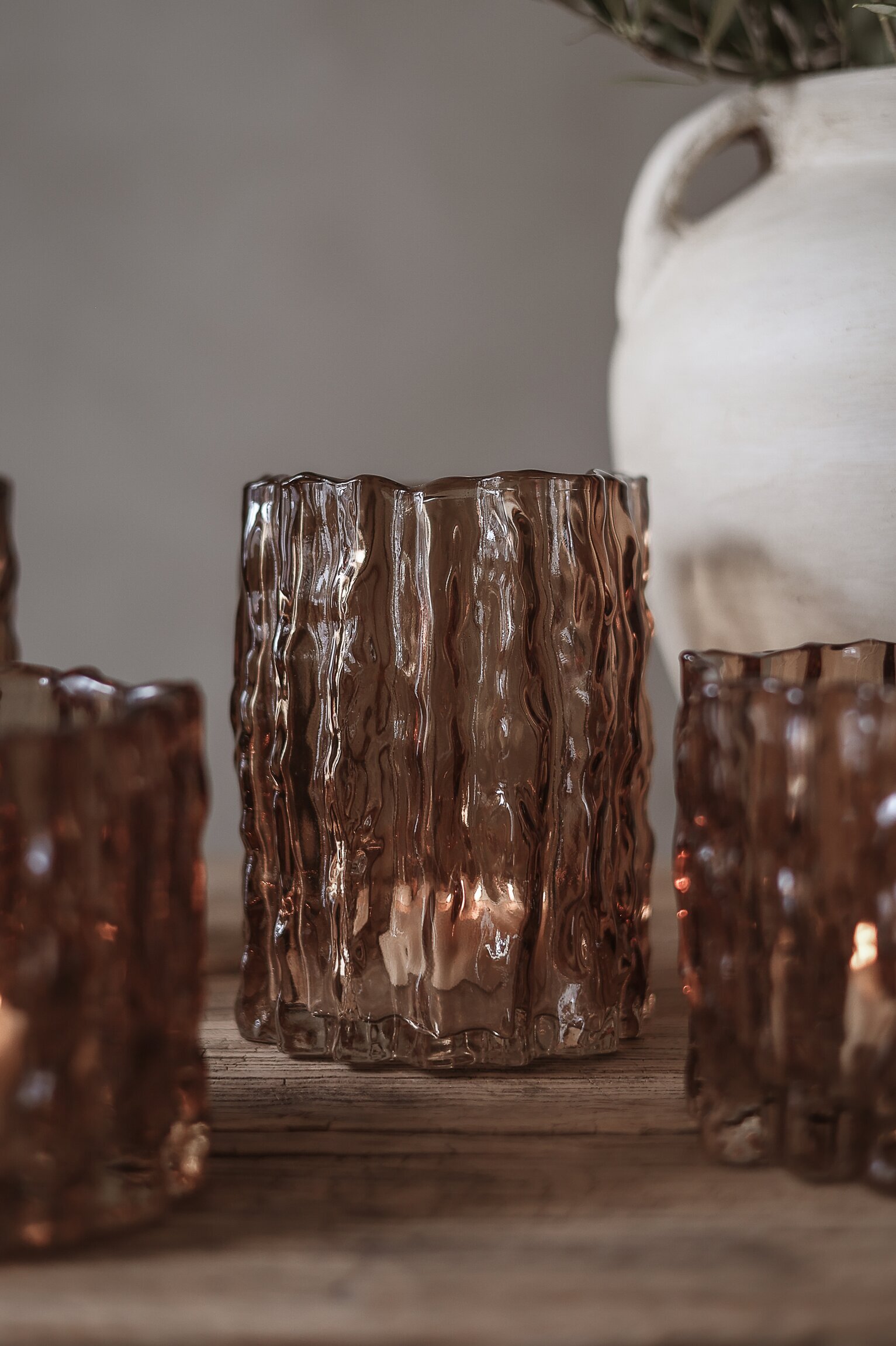 En stilfull och rustik ljuslykta som bär spår av genuint hantverk. Glasets struktur fångar och reflekterar ljuset på ett vackert sätt och sprider ett varmt sken som lyfter stämningen i ditt hem. Tack vare sin form kan den även användas som vas – en mångsidig inredningsdetalj med tidlös charm.