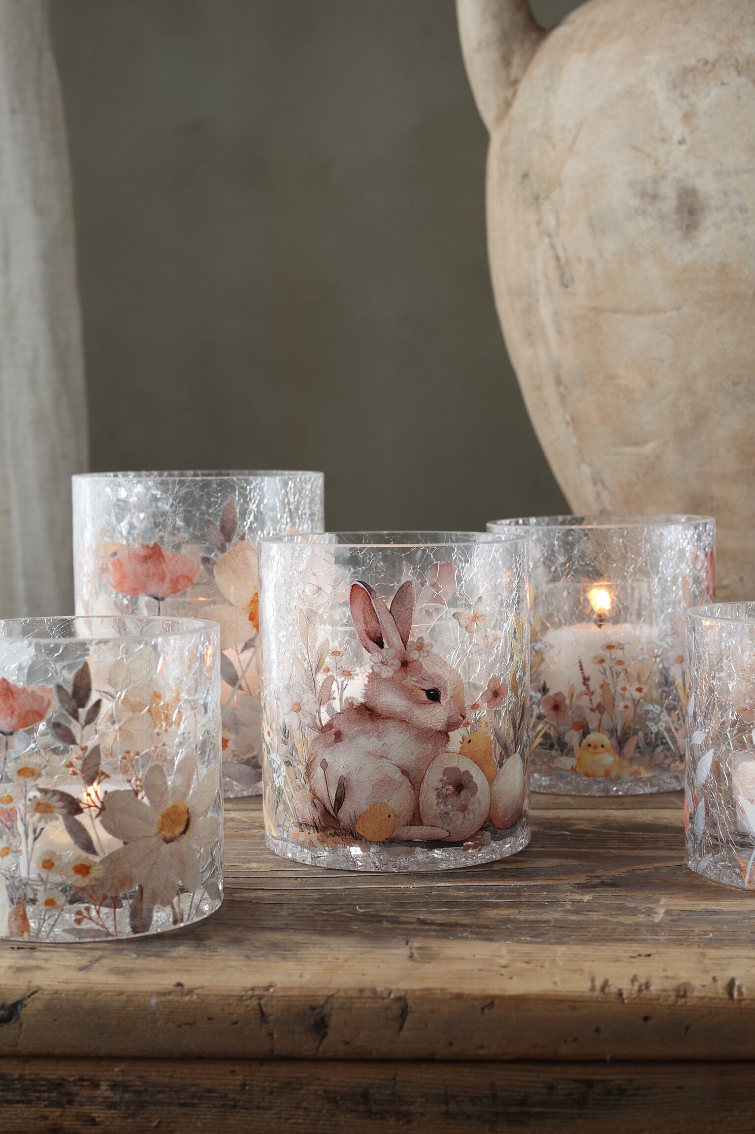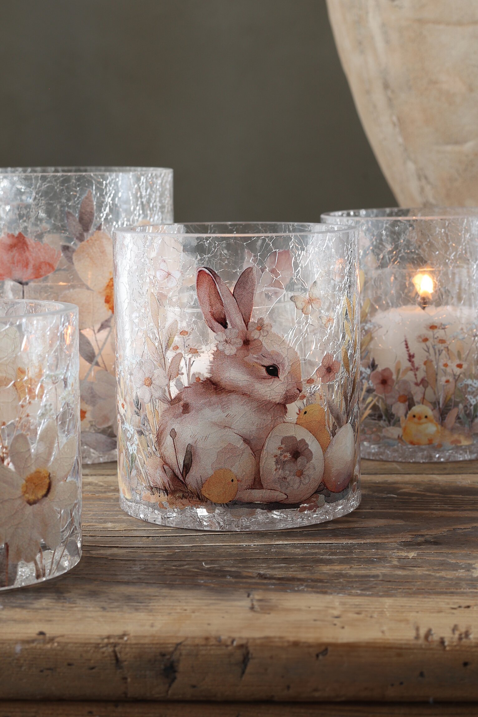 Skapa en magisk atmosfär med denna vackra ljuslykta från Majas Cottage, designad för påsken. Med sina detaljerade motiv av söta kaniner, ägg och blommor, fångar den vårens charm och elegans. Den krackelerade glasdesignen ger ett mjukt och varmt sken när ljuset lyser igenom, vilket gör den perfekt för både mysiga kvällar och festliga tillfällen.