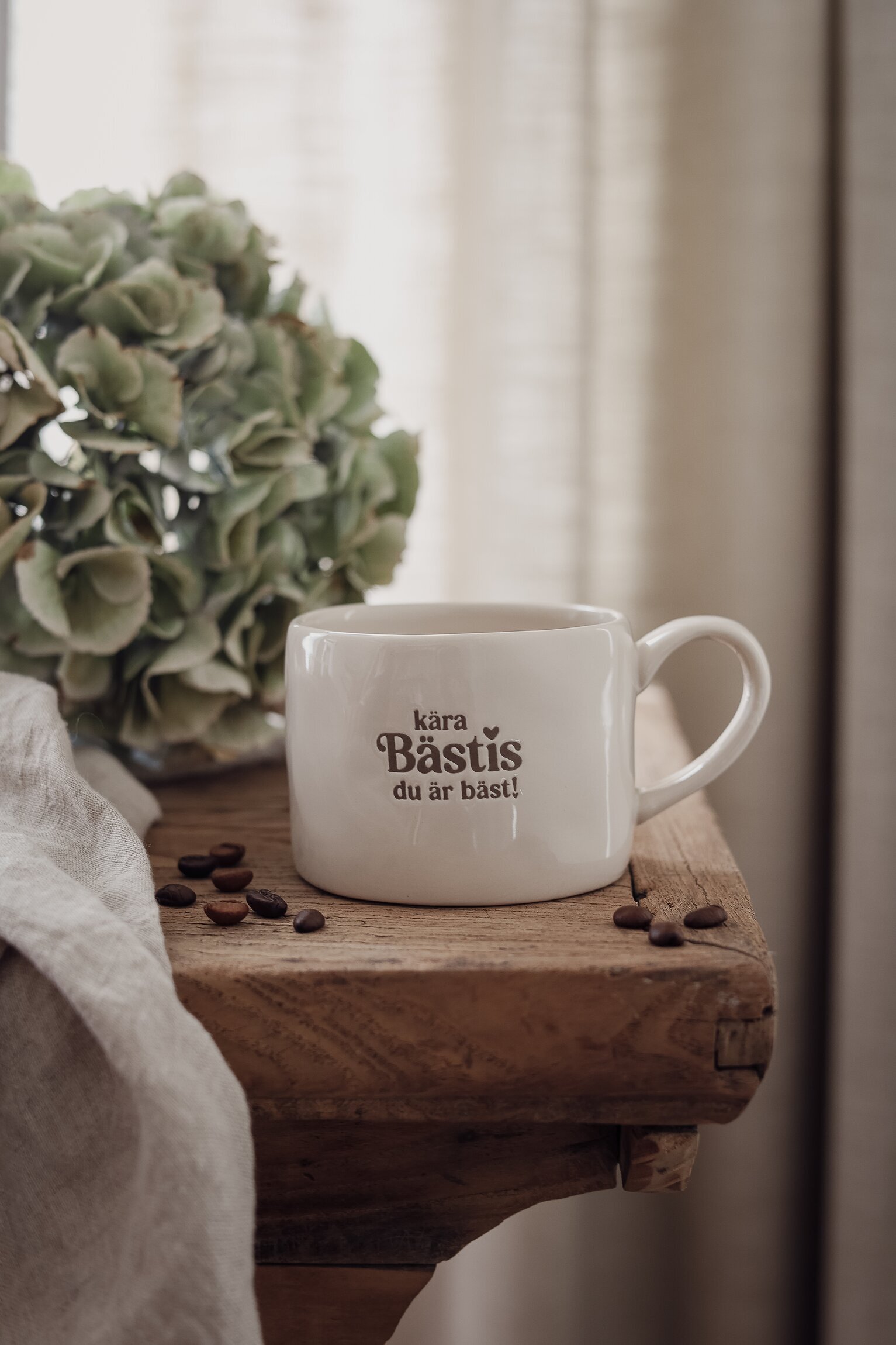 Mugg i stengods med texten Kära Bästis du är bäst – en varm och omtänksam present till någon du tycker extra mycket om. Läs mer