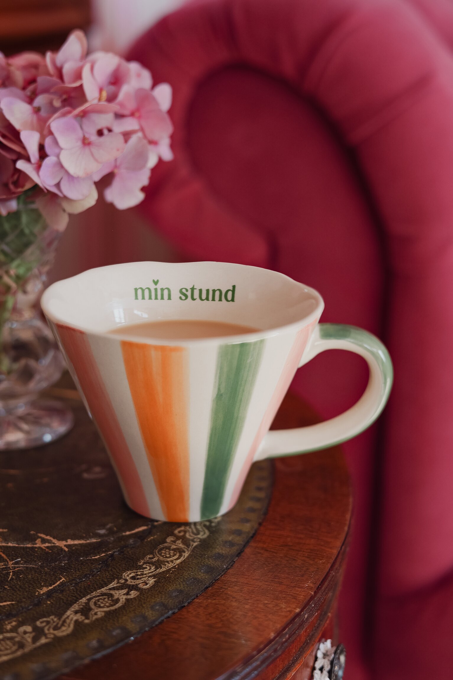 Ljuvlig mugg i stengods med handmålat mönster i glada, härliga färger – en riktig feelgood-favorit till kaffe, te eller varm choklad. Läs mer