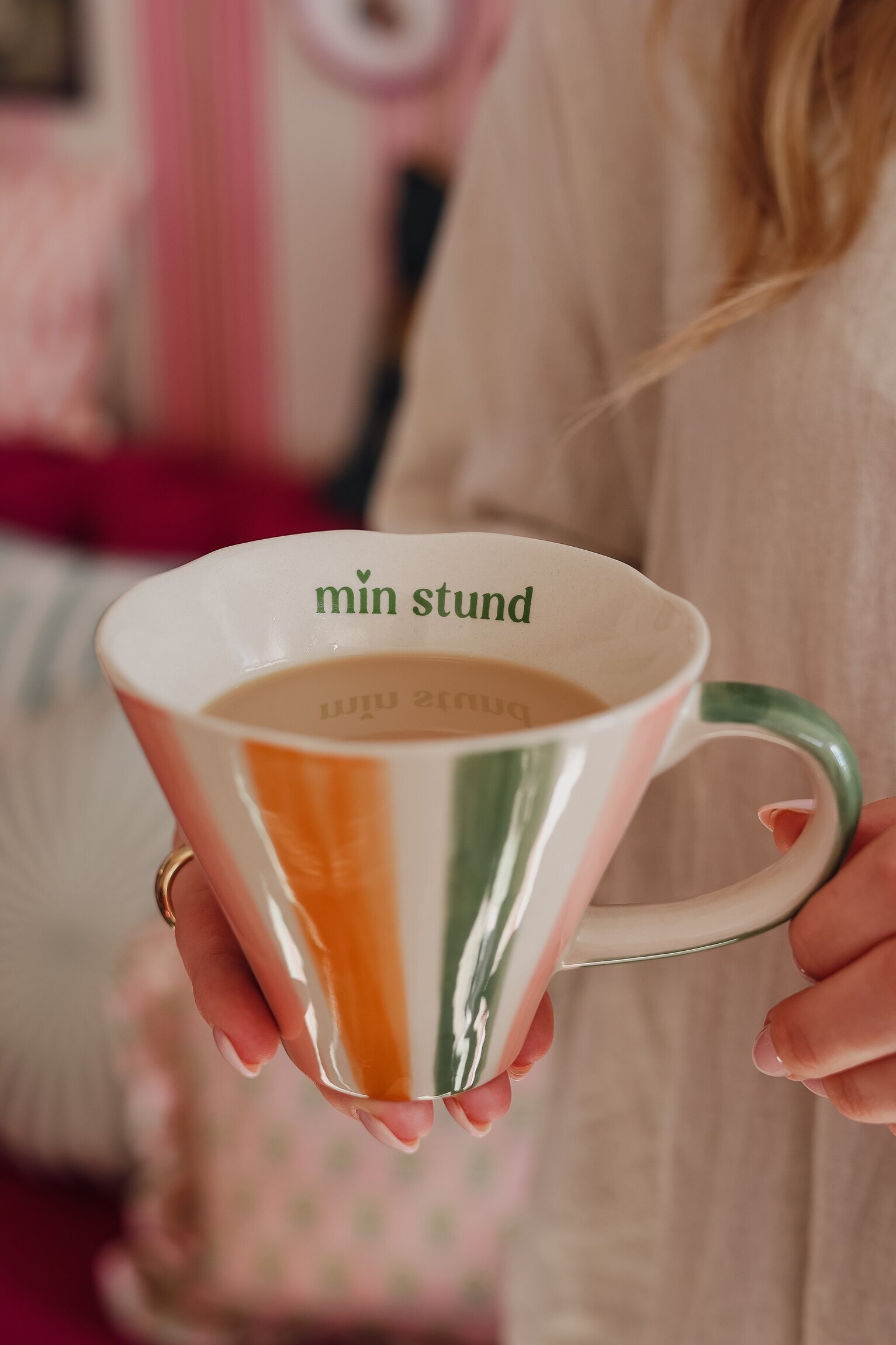 Ljuvlig mugg i stengods med handmålat mönster i glada, härliga färger – en riktig feelgood-favorit till kaffe, te eller varm choklad. Den charmiga designen gör den lika fin att duka fram som att ge bort i present.