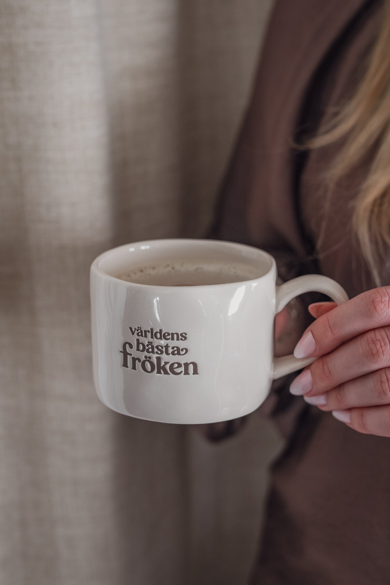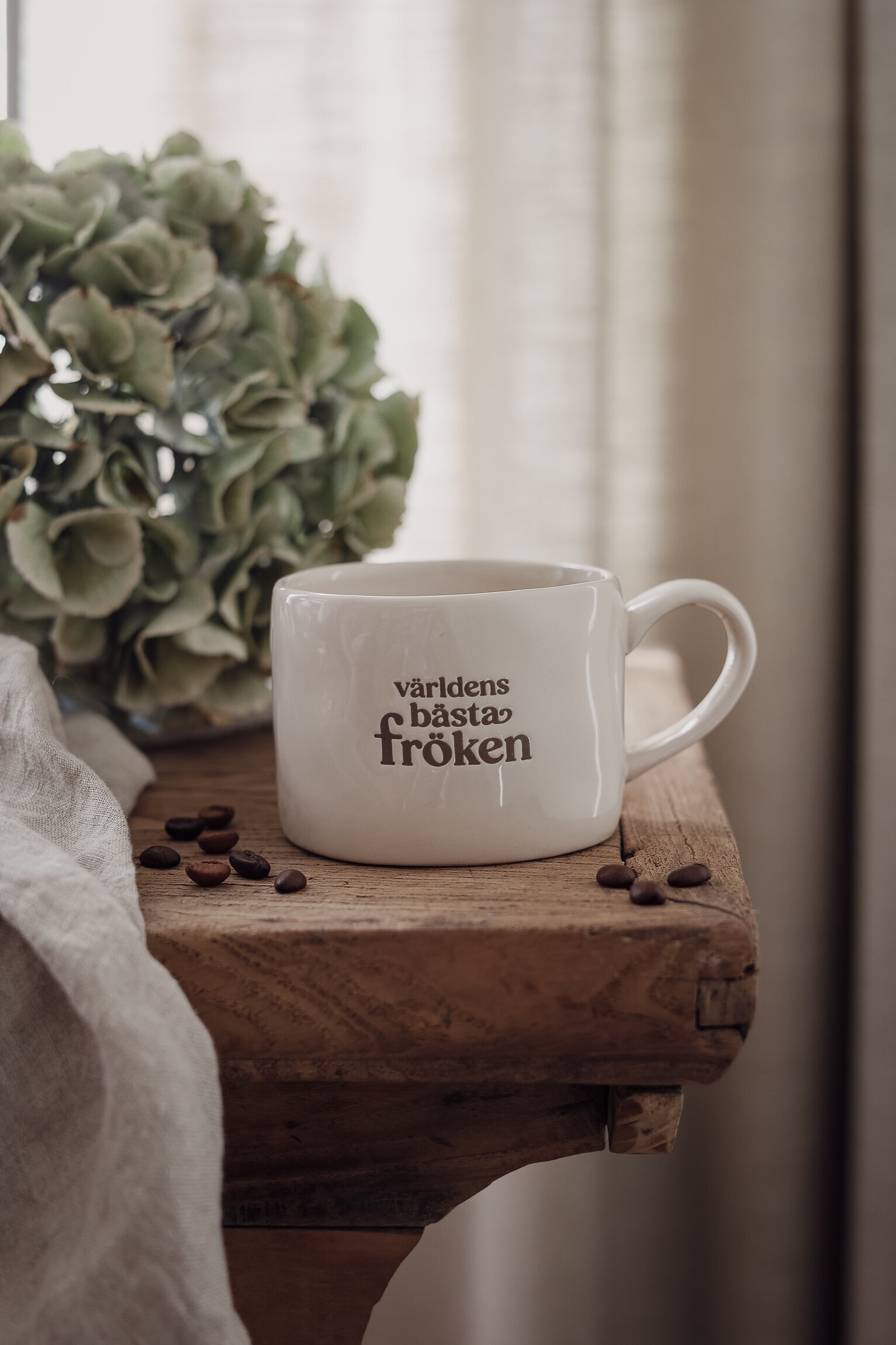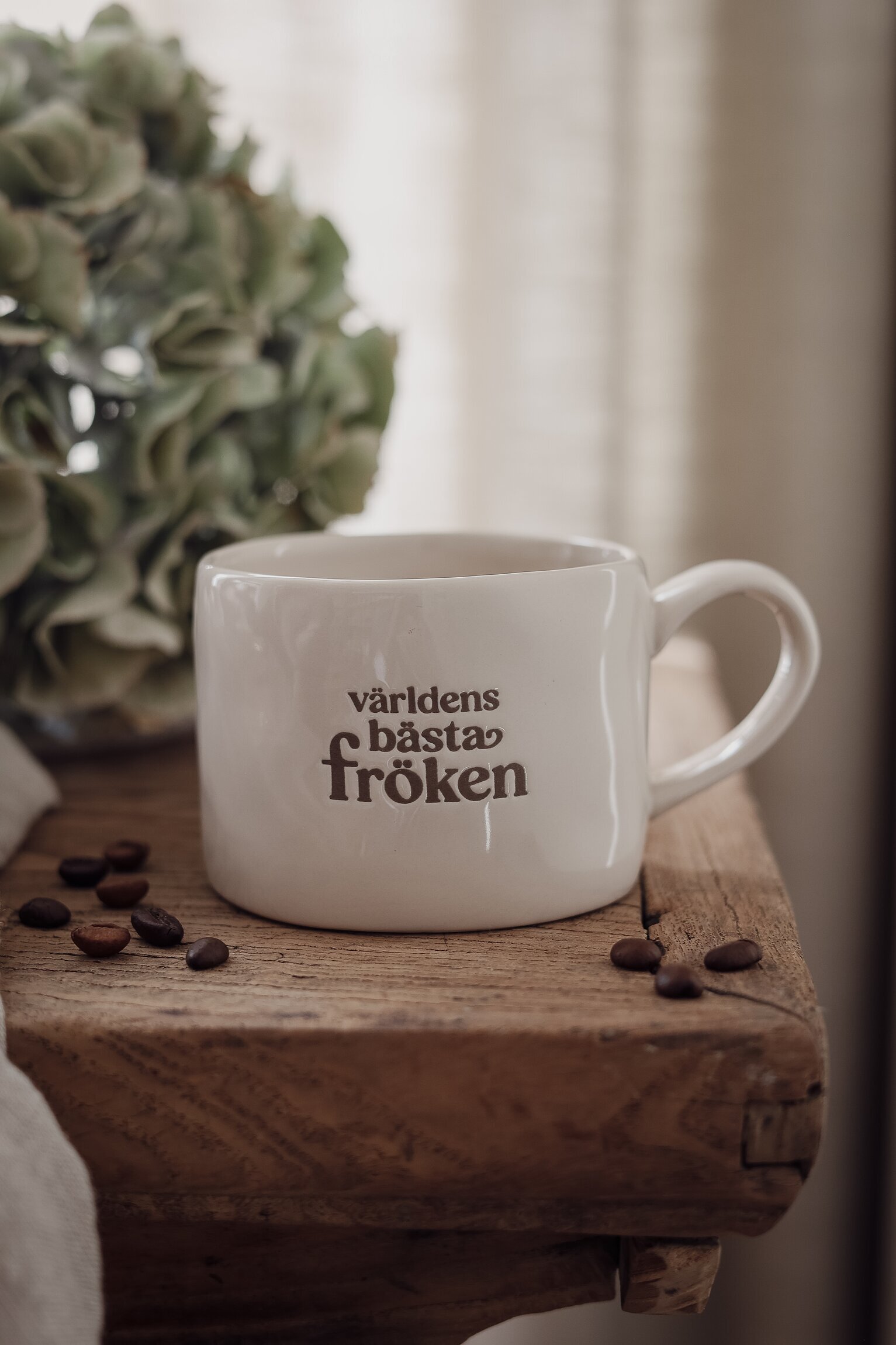Mugg i stengods med texten Världens bästa fröken – en varm och omtänksam present till skolavslutningen. Den stilrena designen gör muggen lika fin till vardags som till mysiga fikastunder.