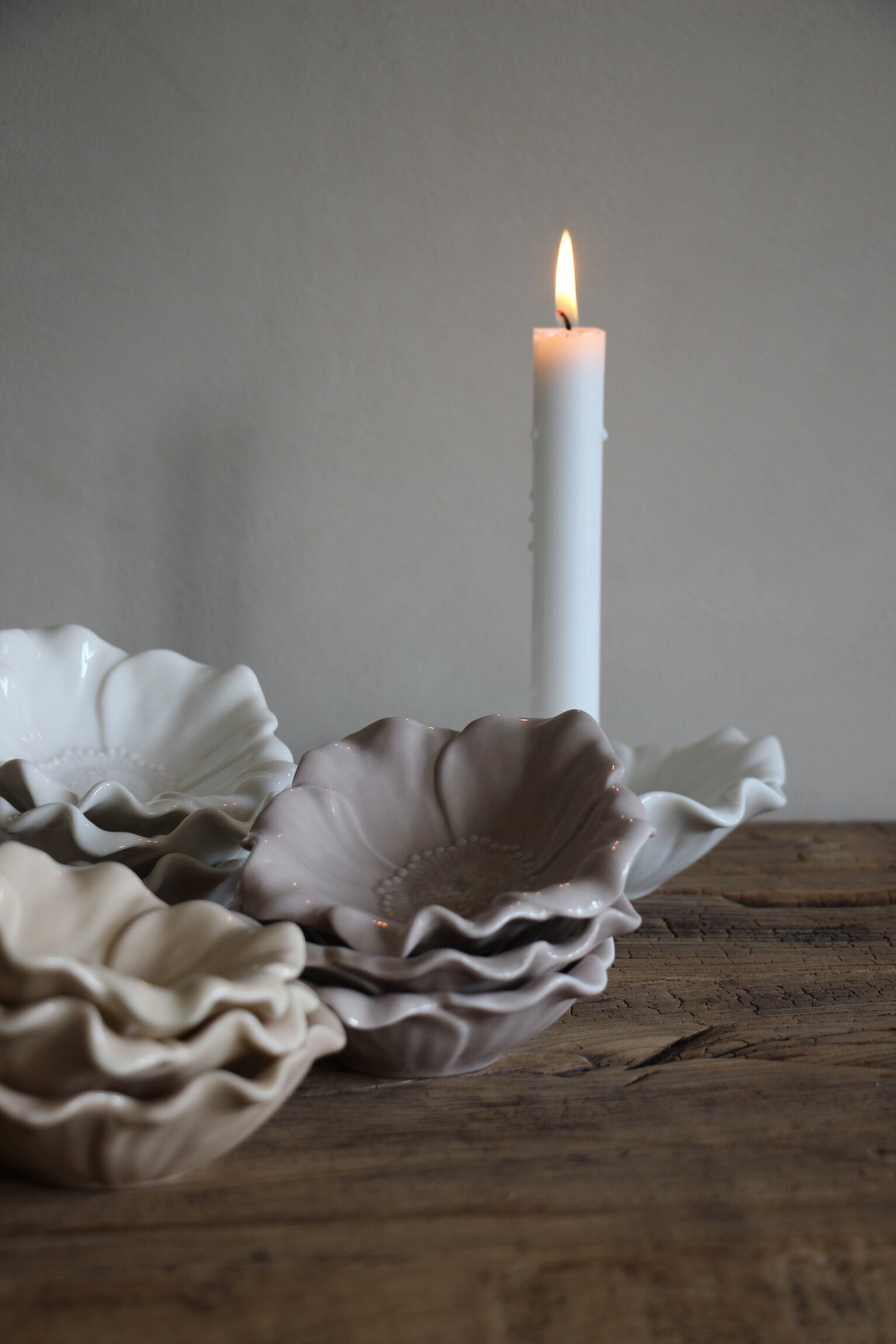 Blomstra-skålarna är ljuvliga skapelser i keramik, formade med inspiration från naturens egna blomblad. Varje skål har en levande känsla och unika detaljer som förvandlar det dukade bordet till något alldeles extra.