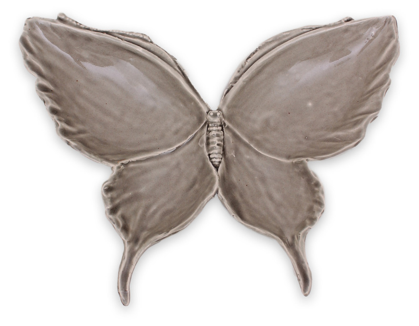 Denna vackert formade fjäril i glaserad keramik är en harmonisk detalj som ger en känsla av lätthet och elegans till din inredning. Den mjuka, naturliga färgtonen gör att den smälter in i olika miljöer, samtidigt som dess detaljrika utformning ger ett unikt uttryck.