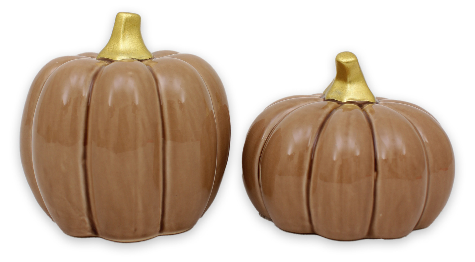 Charmiga dekorationspumpor i keramik blir en perfekt detalj till ditt hem. Med sin eleganta, blanka yta och gyllene topp ger de en känsla av lyx, samtidigt som deras olika former och vackra färger gör varje pumpa unik.