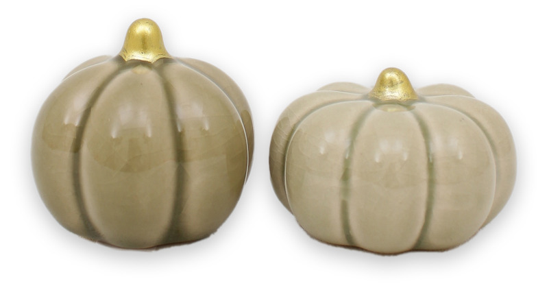 Charmiga dekorationspumpor i keramik blir en perfekt detalj till ditt hem. Med sin eleganta, blanka yta och gyllene topp ger de en känsla av lyx, samtidigt som deras olika former och vackra färger gör varje pumpa unik.