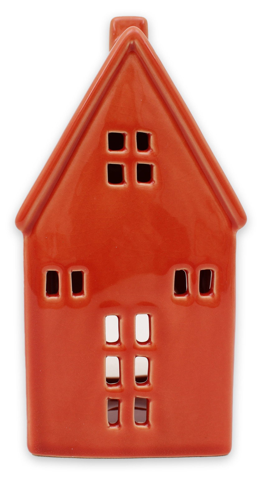 Charmig ljuslykta i form av ett rostrött hus sprider ett varmt sken som lyser upp mörka kvällar. Med sin enkla design och stämningsfulla ljus passar den perfekt på bordet, i fönstret eller som en del av en mysig höstdekoration. Ett litet hus som gör höstens hemmakvällar ännu mer ombonade.