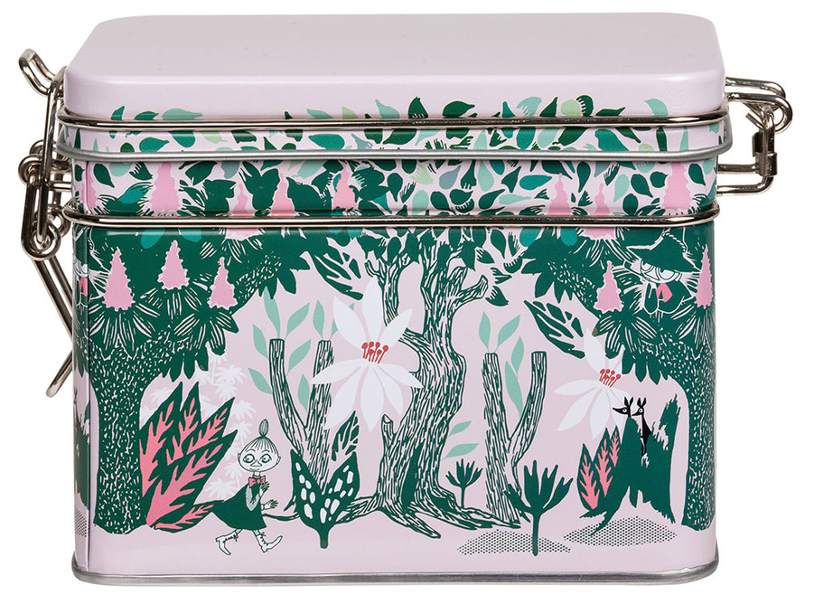 Den här lilla plåtburken är perfekt för löste eller tepåsar. Med ett tätt spännlock bevaras både smak och doft – samtidigt som det vackra motivet med Lilla My och den lummiga skogen gör burken till en fin detalj i köket.