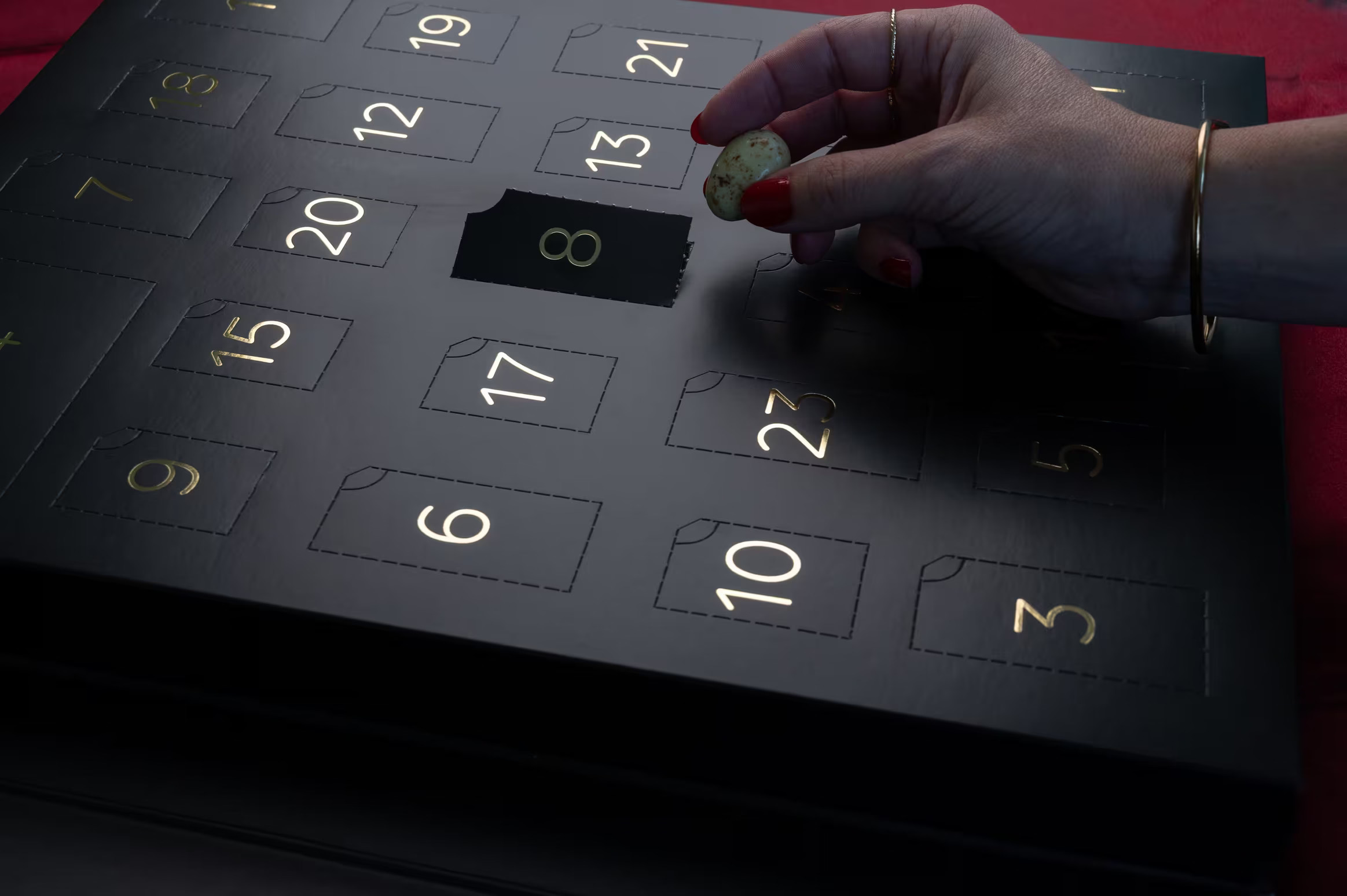 Kalendern går att avnjuta på två för de som vill och innehåller bl a smakerna viol, melon & jordgubbe.
