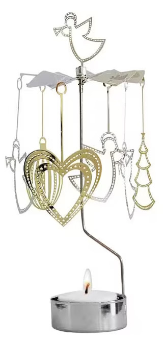 Stort & vackert änglaspel med hjärtan, änglar & granar. Änglaspelet har plats för ett värmeljus. Mått: Ø 11 x 27 cm. Läs mer