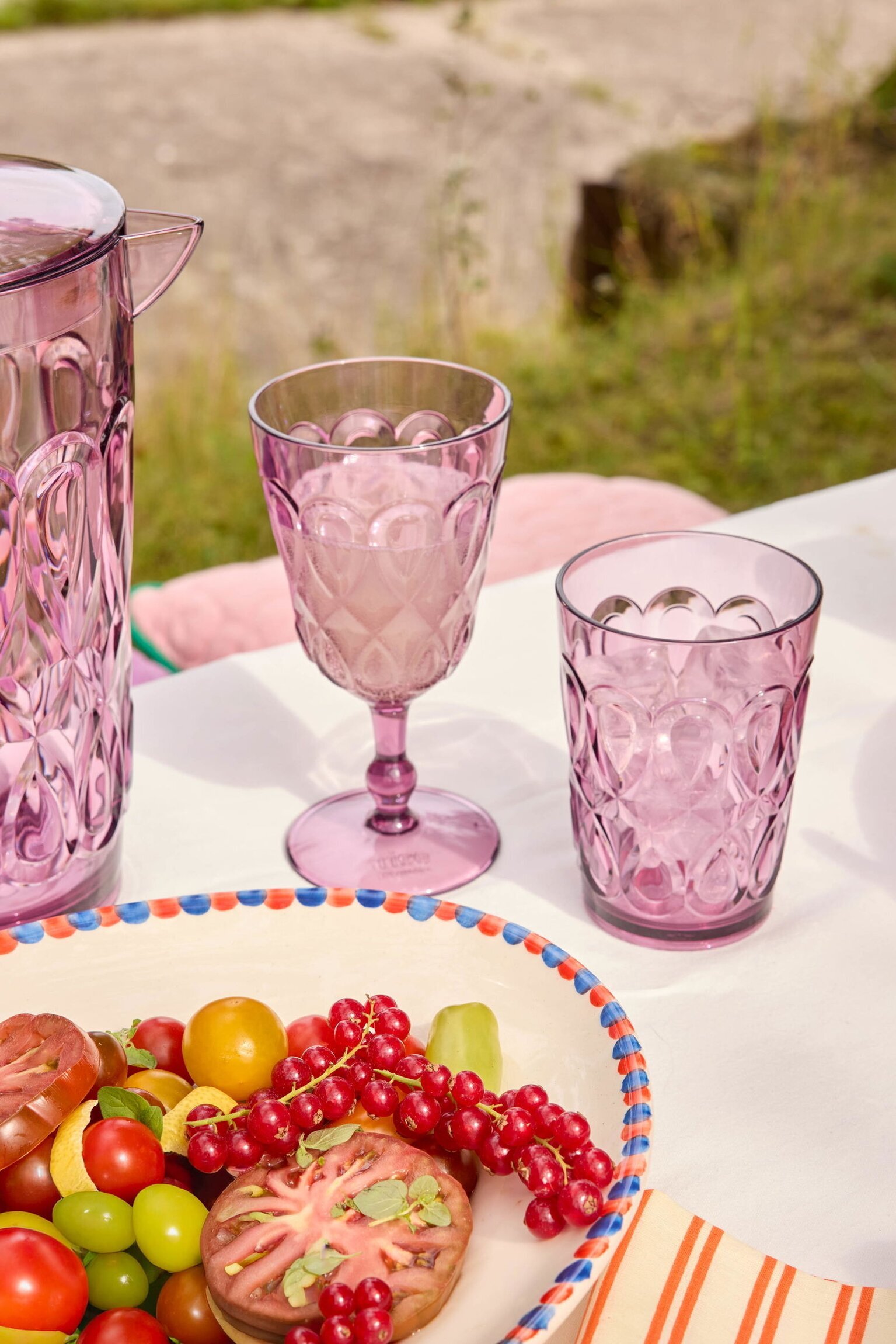 Passar lika bra till vatten, saft och lemonad som till sommarens dukningar på altanen eller i trädgården.