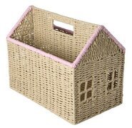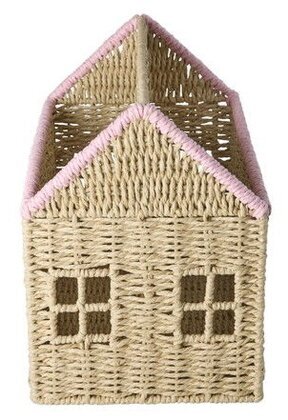 En superfin förvaringskorg i form av ett litet hus – perfekt till barnrummet. Korgen är handgjord i flätat naturmaterial och har söta fönsterdetaljer samt en mjuk rosa kant som ger den en lekfull och varm känsla.