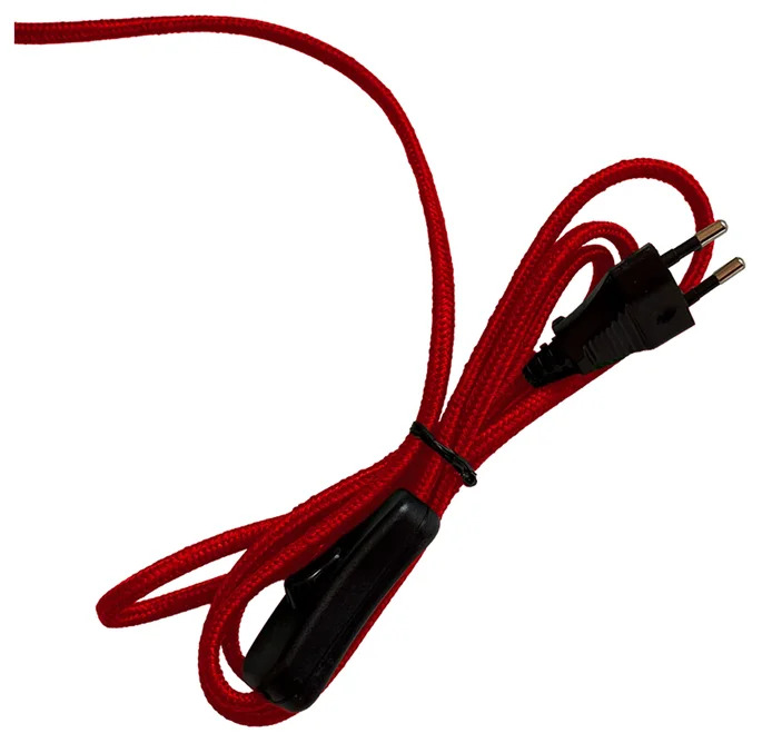 Den röda textilkabeln har en praktisk av/på-knapp. Ljuskälla ingår ej. Passar E27-sockel.