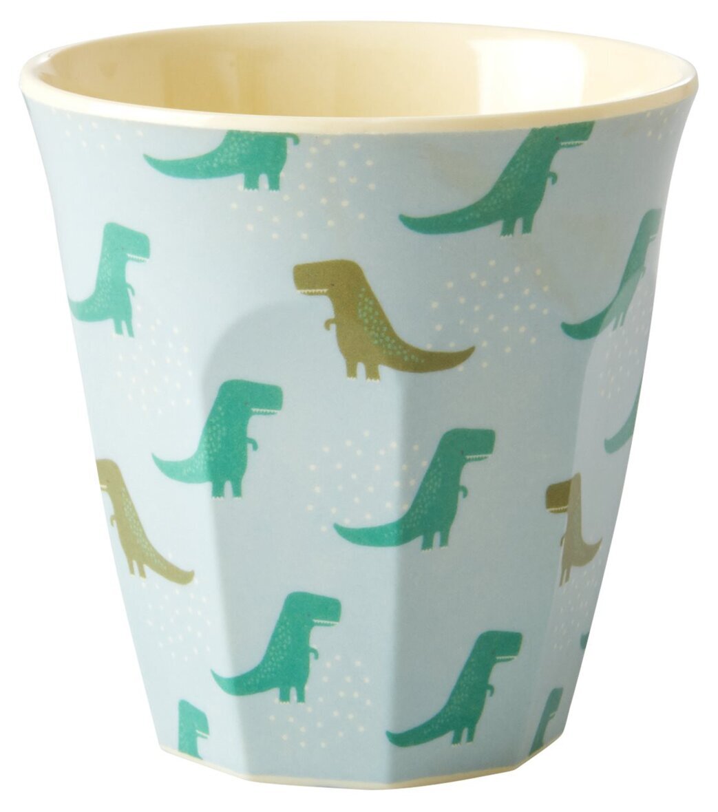 På bilden ser vi en mugg som fångar blicken med sitt lekfulla och glädjefyllda motiv. Produkten är en del av sortimentet hos RumAttÄlska.se, en inredningsbutik känd för att skapa inspirerande heminredning. Muggen, känd som Barnmugg Dino Print, kommer från varumärket Rice, vilket ger en känsla av kreativitet och fantasi för de yngre.