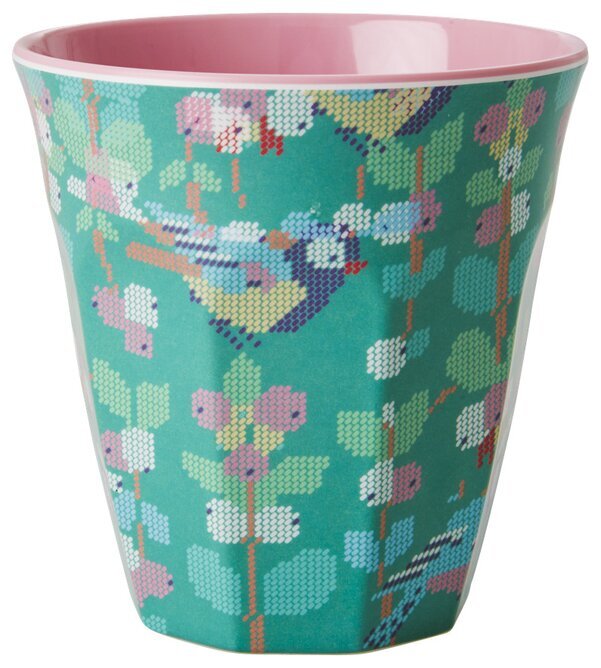 En färgglad mugg med fågelprint. Muggarna finns i flera färger och mönster som är fina att kombinera tillsammans. Denna mugg passar till både kalaset, festen, picnicen och framförallt hemma till barnen. Håller i alla lägen, inget glasskross efter en tappad mugg. Rymmer ca 2,5 dl. Tål maskindisk men inte micro. Denna produkt är godkänd för livsmedel.
