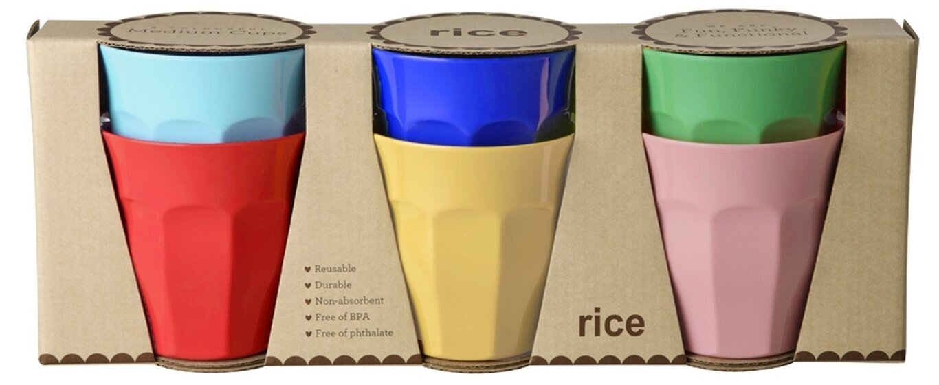 Färgglada mellanmuggar i melamin från Rice – 6-pack. Läs mer