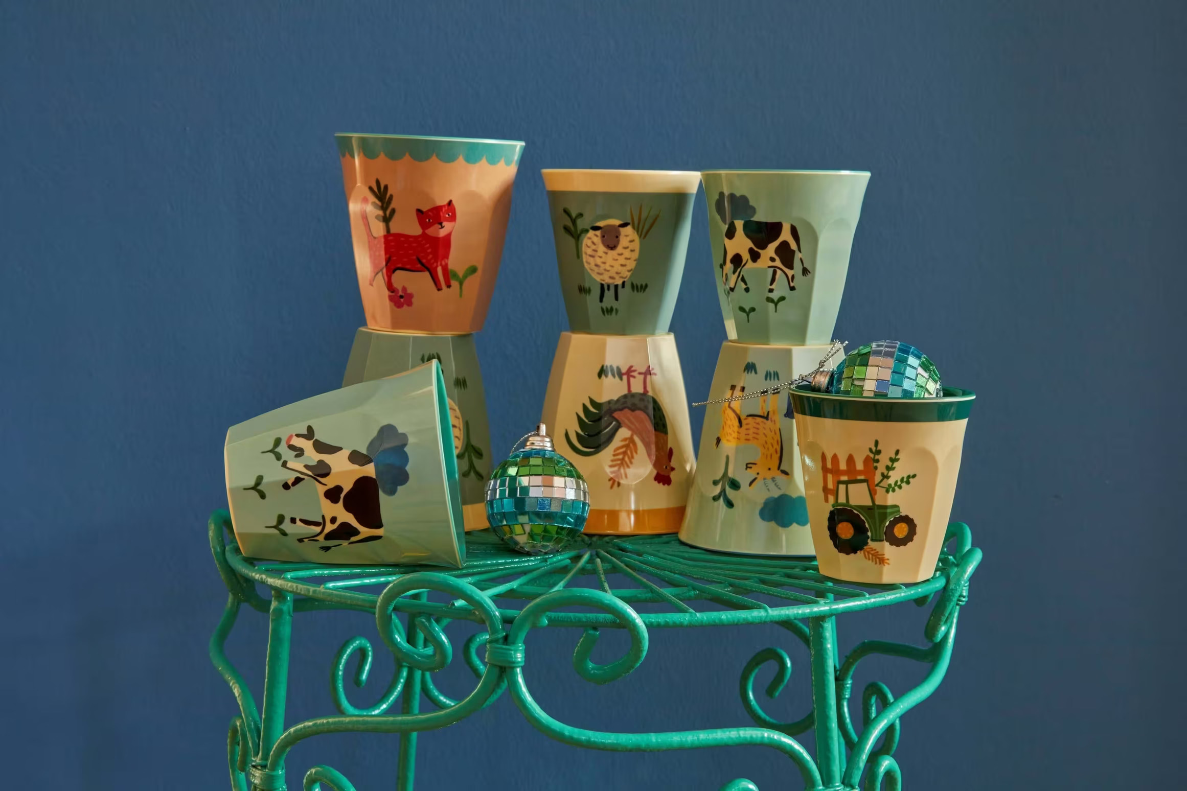 Företaget grundades 1998 och har sedan dess tillfört färg och glädje till hem i hela världen. RICE skapar melaminmuggar, tallrikar, bestick, förvaringskorgar, brickor och mycket annat. Produkterna är lika funktionella som snygga.