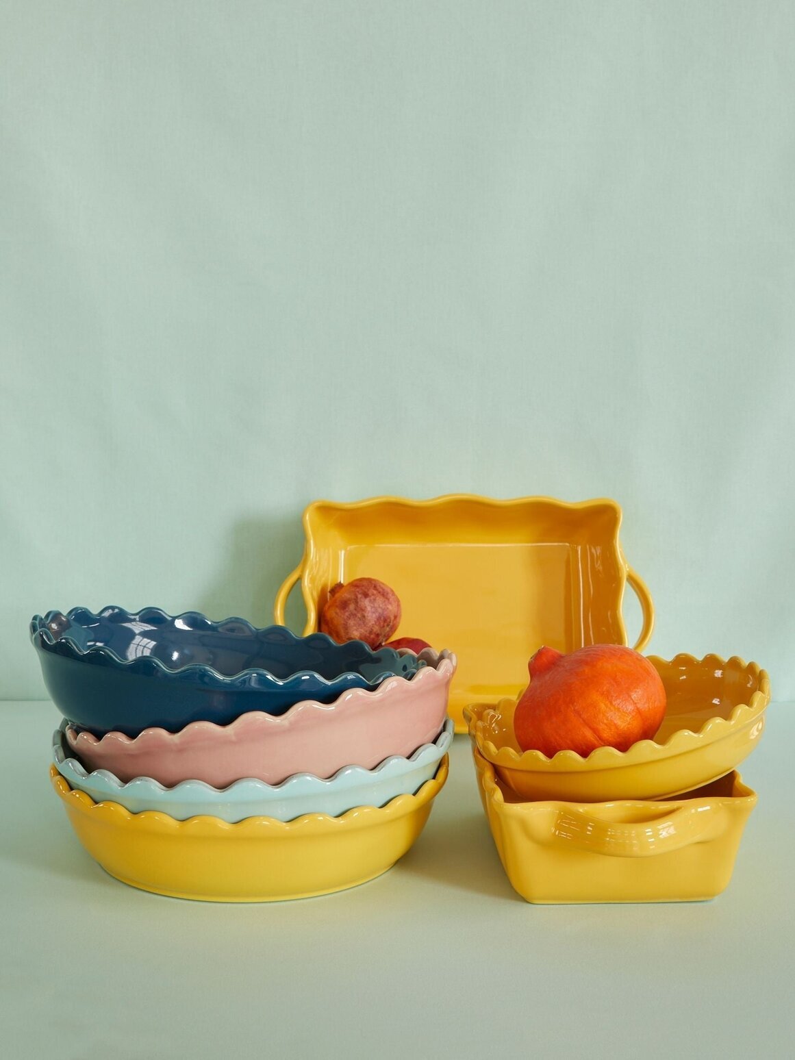 Pajform tillverkad i stengods med vågig kant upptill samt handtag, finns i flera storlekar. Från Rice. Läs mer
