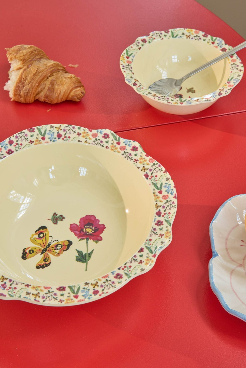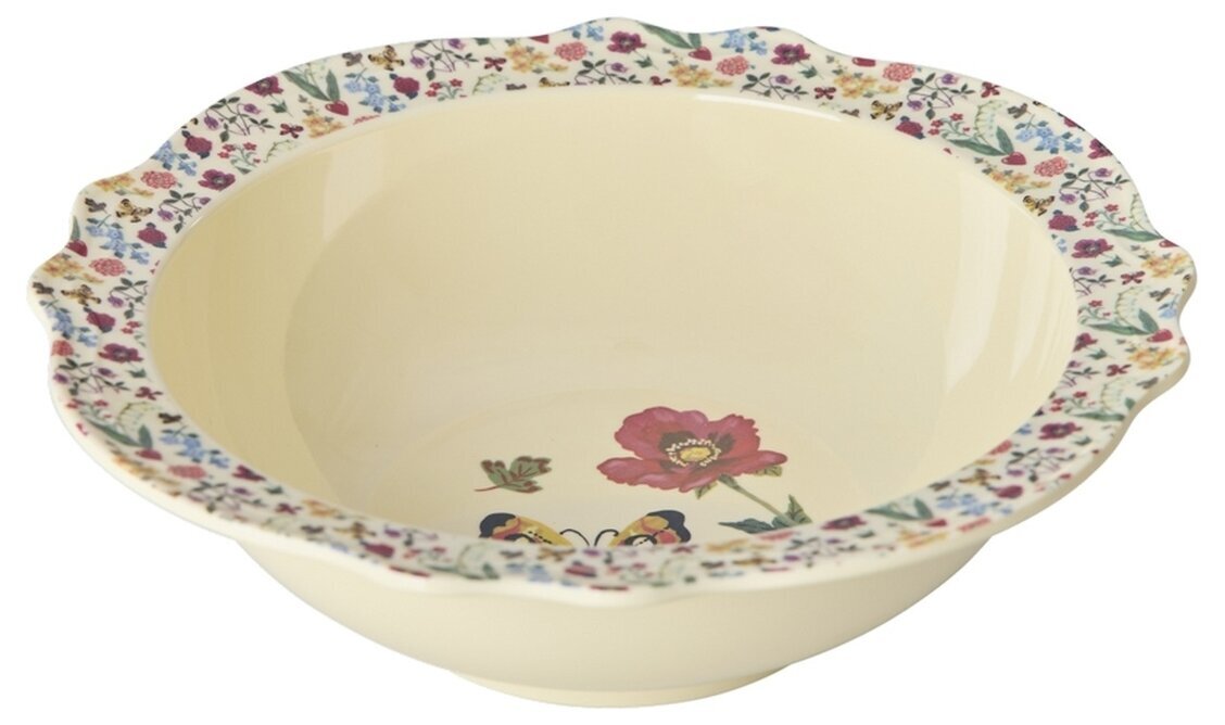 Denna vackra skål är resultatet av ett magiskt samarbete mellan Rice och den franska konstnären Nathalie Lété. Med sina romantiska blommor, fjärilar och lekfulla detaljer blir den en riktig ögonfångare på bordet.