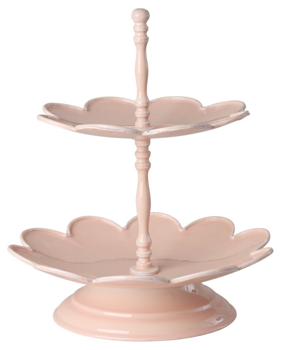 Ett elegant våningsfat i metall med vackert glaserad finish i en mjuk, rosa nyans. Med två våningar får du extra serveringsyta för allt från bakverk och småkakor till frukt och snittar – perfekt till fika, brunch och fest.