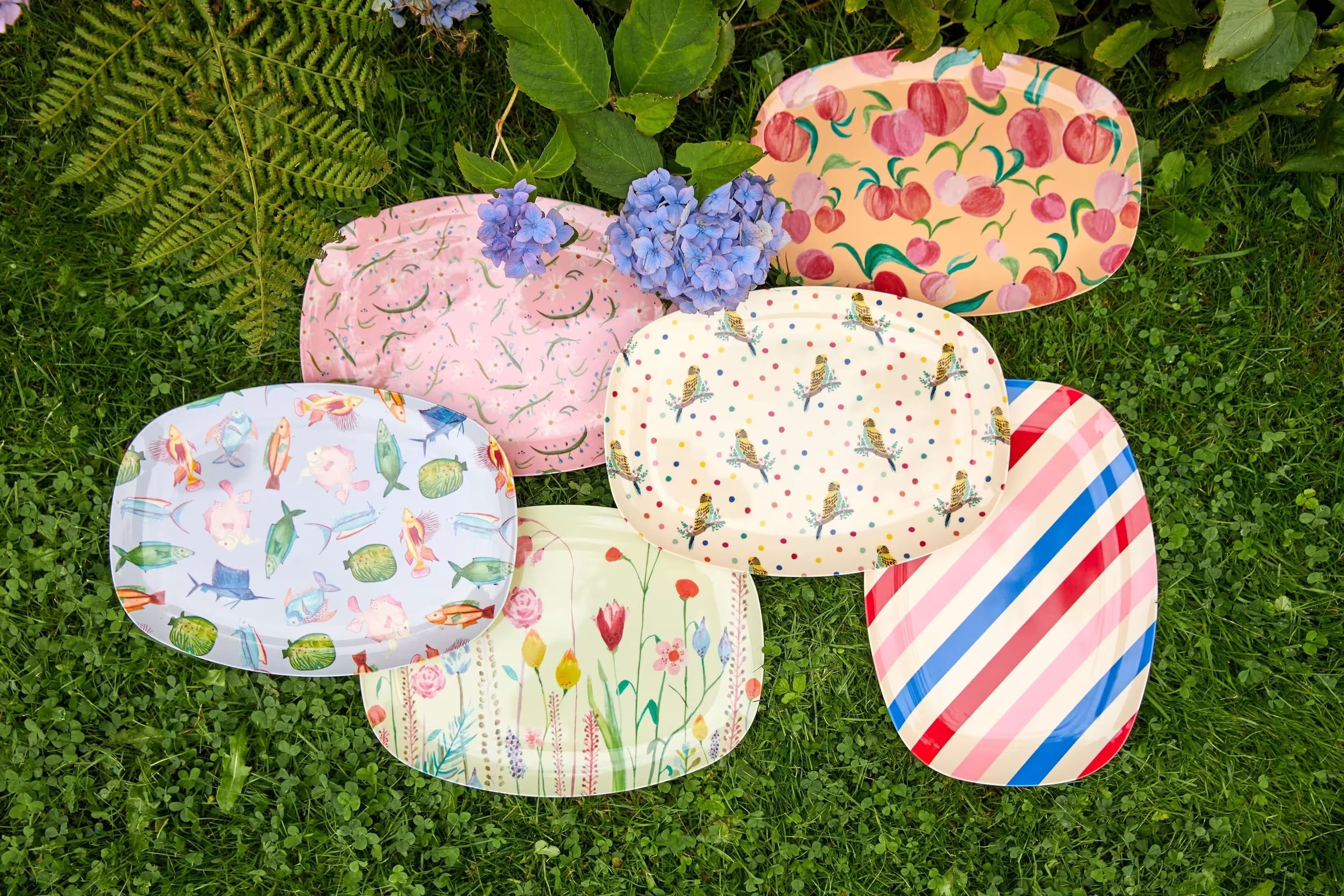 Sammanfattningsvis erbjuder Rice's Tallrik Summer Flowers Print en härlig samling av melamintallrikar som är både funktionella och dekorativa. Med sina olika mönster och motiv ger de en känsla av glädje och sommarens livfullhet till varje måltid. Oavsett om det är en picknick i parken eller en middag i trädgården, kommer dessa tallrikar att skapa en visuell fest och göra varje tillfälle speciellt.