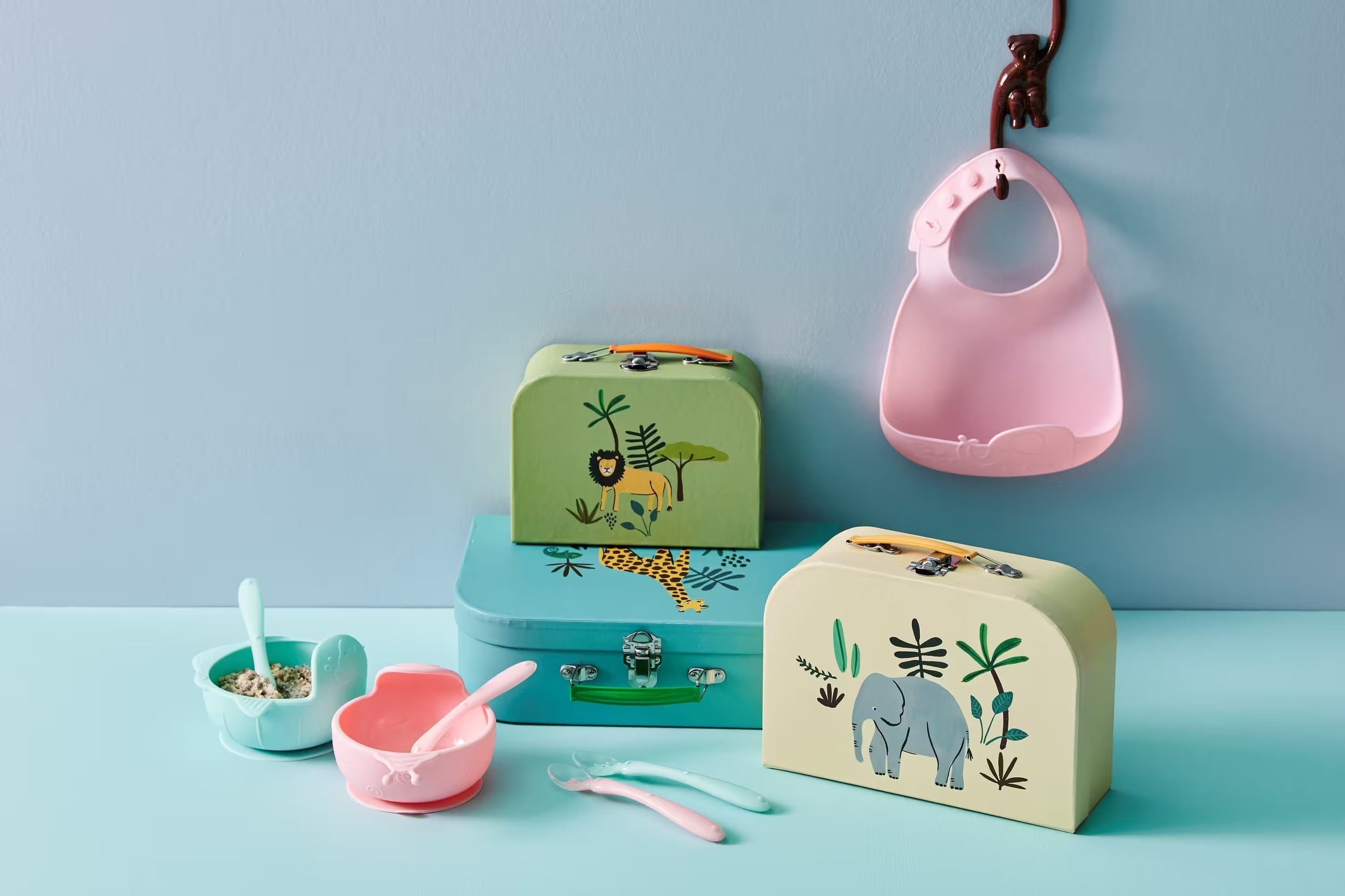 Barnväskor med vackra djurmotiv som levereras i set om 3 stycken i tålig kartong med spännlås. Använd till förvaring av leksaker, till resan för favoritleksaken eller som en vacker inredningsdetalj.