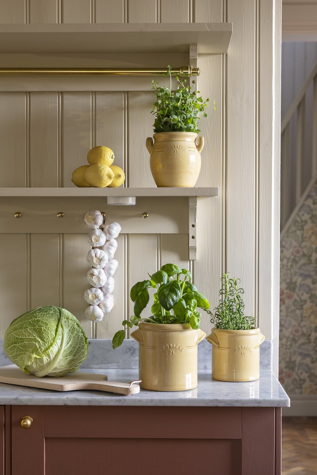 De två klassiska handtagen och den mjuka glansen ger en tidlös känsla som passar både lantligt och modernt hem. Använd det som en stämningshöjare i hallen, på köksbänken eller som centerpiece på matbordet.