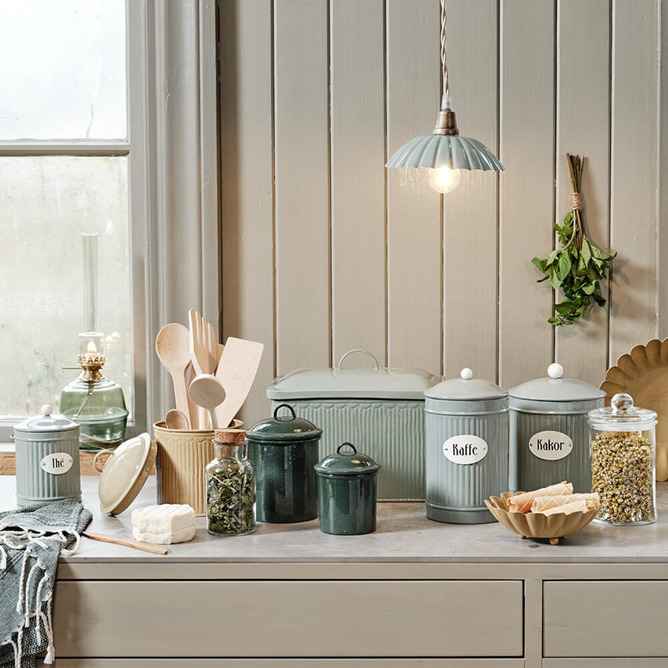 Förvara dina favoritsmåkakor med stil. Denna fina kakburk i grön plåt med vit knopp och charmig etikett blir en dekorativ detalj på köksbänken. Perfekt till vardagsfikat eller när du vill bjuda gästerna på något gott. Burken rymmer både hembakat och köpta godsaker – och håller dem dessutom fräscha längre.