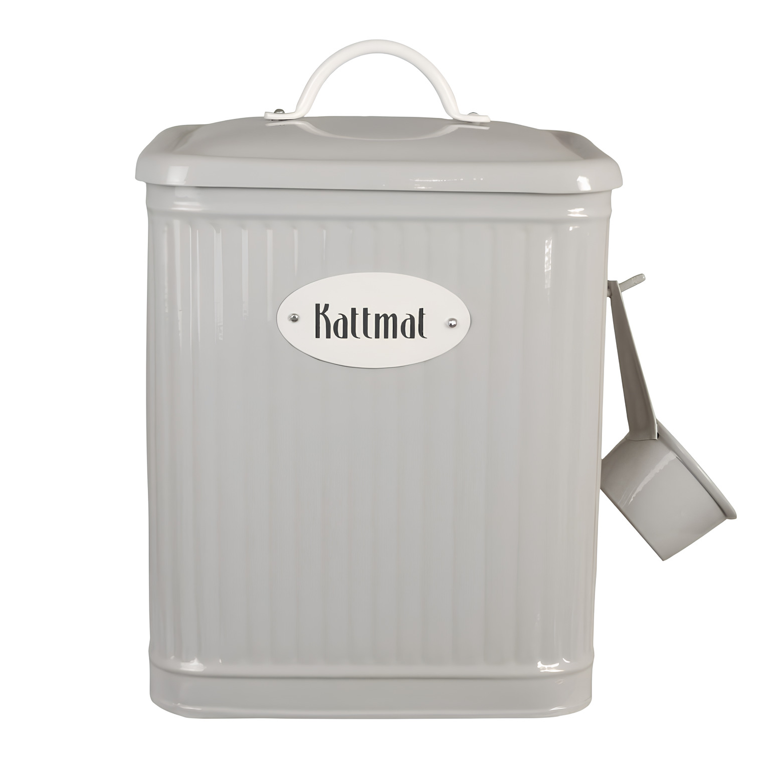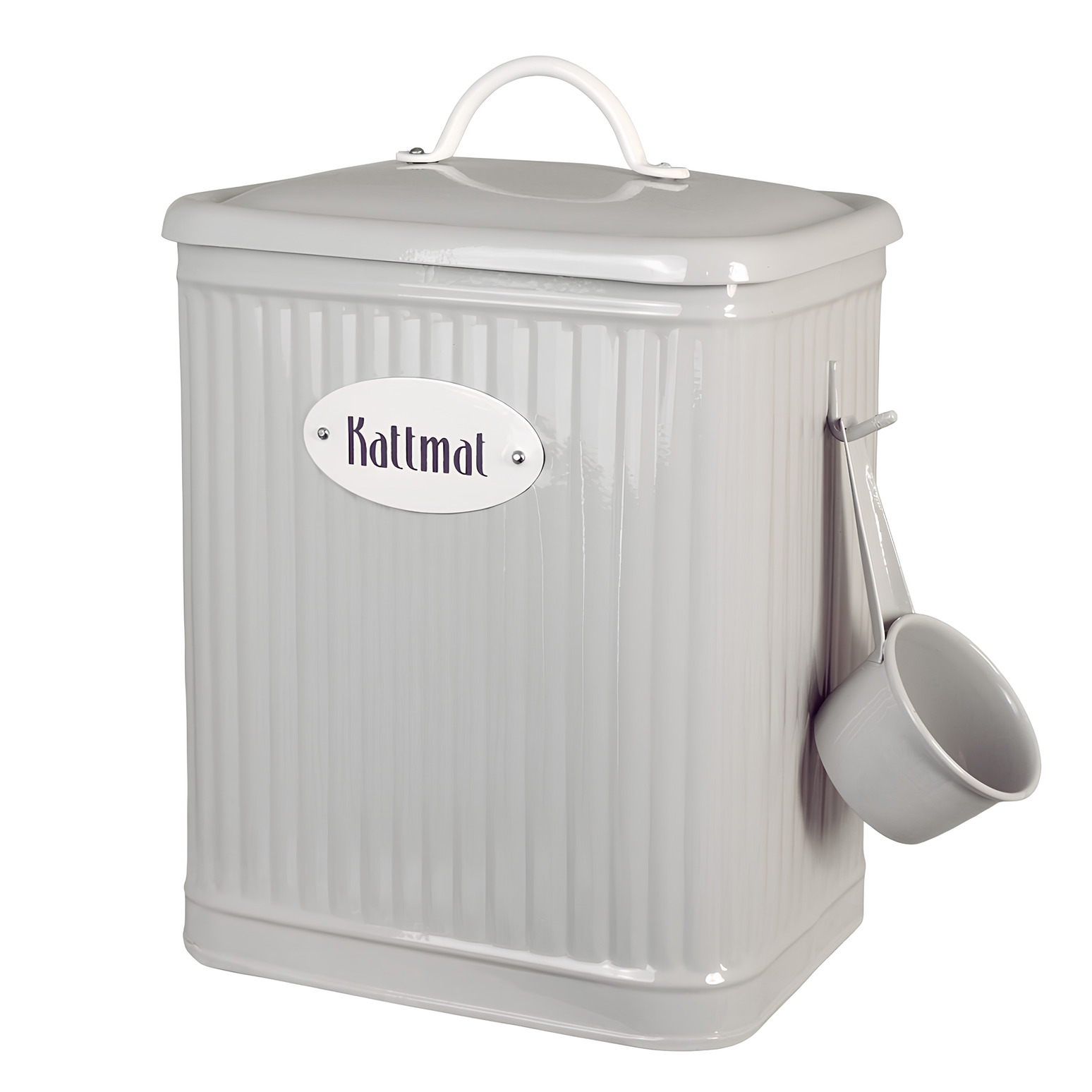 Praktisk och dekorativ plåtburk för förvaring av kattmat, från Strömshaga. Läs mer