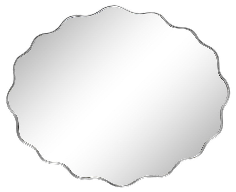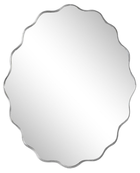 En charmig spegel med dekorativ vågig ram i rostfritt stål. Den lekfulla formen ger ett mjukt uttryck och passar lika fint i hallen som i sovrummet eller badrummet. Spegeln är en elegant detalj som reflekterar både ljus och stil – och drar blickarna till sig utan att ta över.
